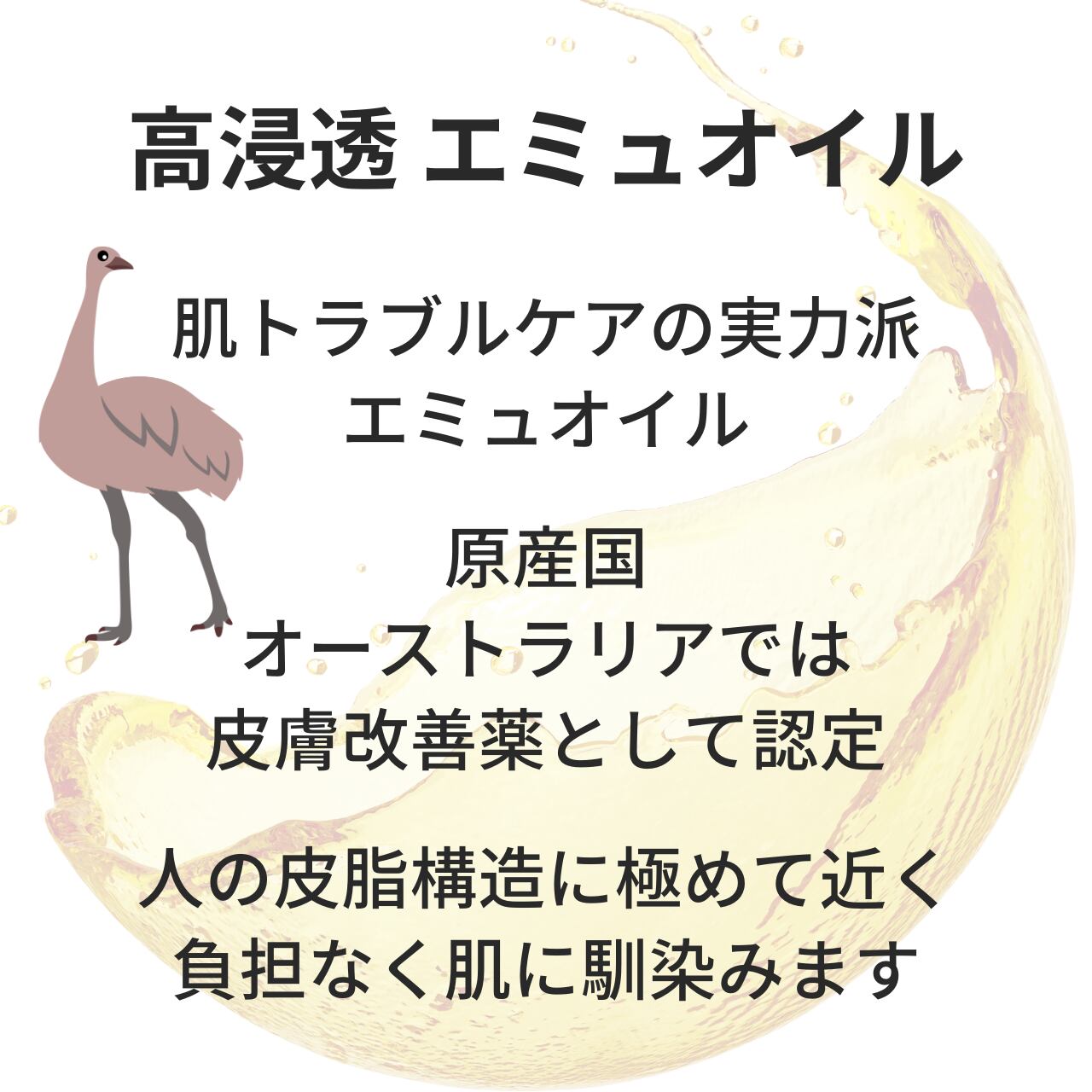 *¹エミュー油 *² ホホバ種子油 *³腐植土抽出物 *⁴ 加水分解(ビフィズス菌/エンテロコッカスファエシウム/乳酸桿菌/ストレプトコッカスサーモフィルス)/豆乳発酵カード(整肌成分)